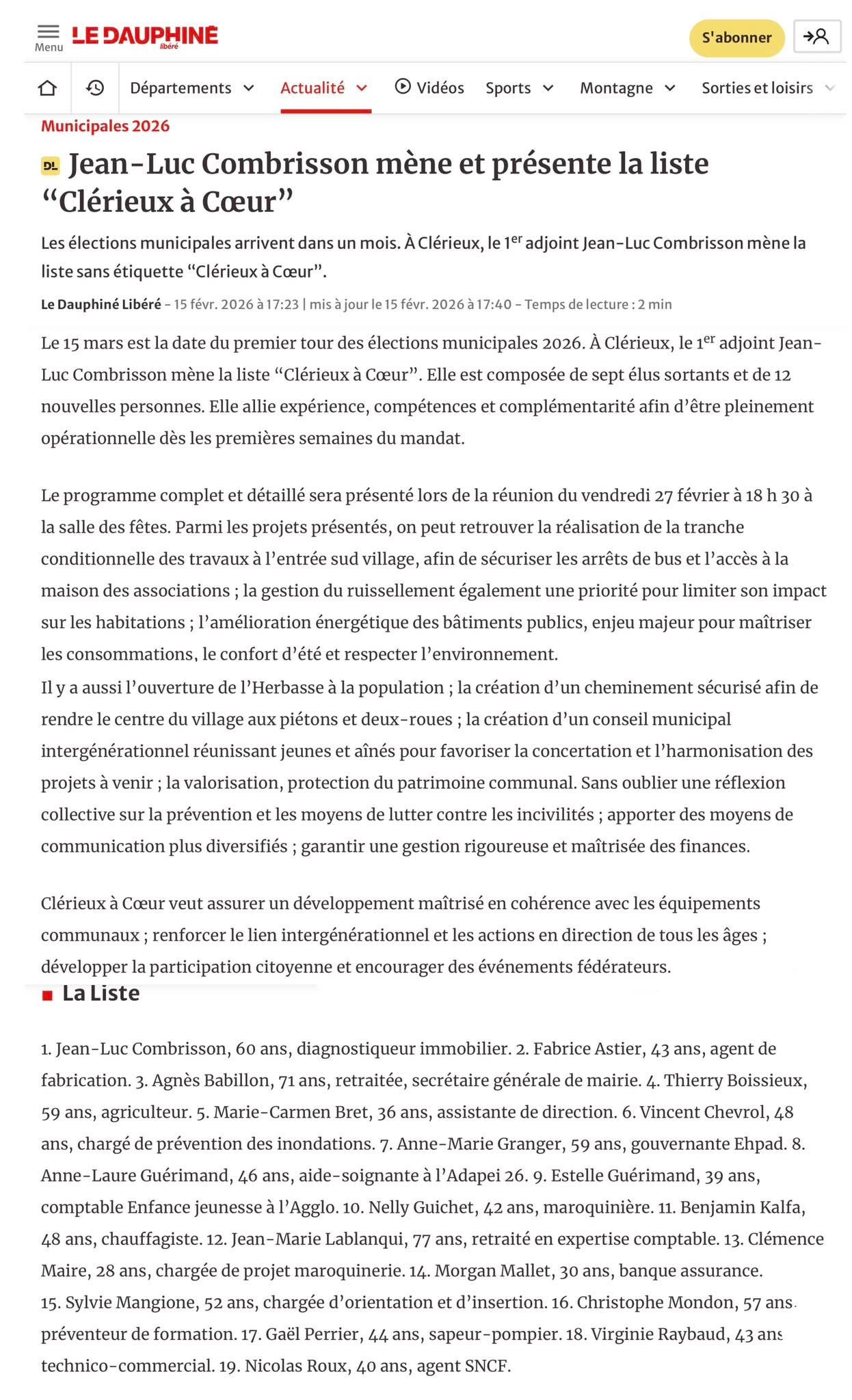 Article du Dauphiné paru le vendredi 19 décembre 2025
